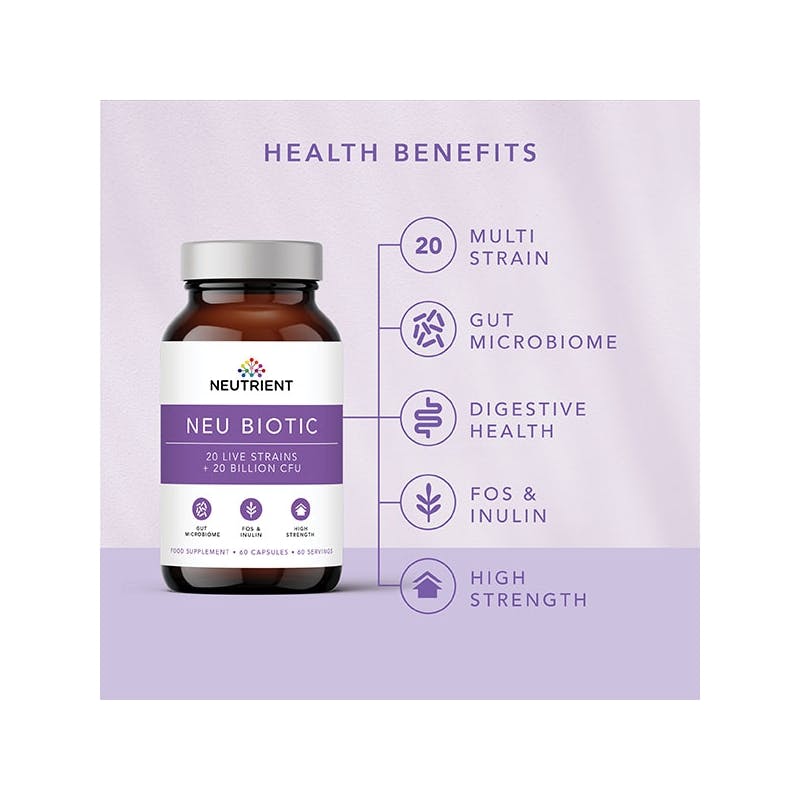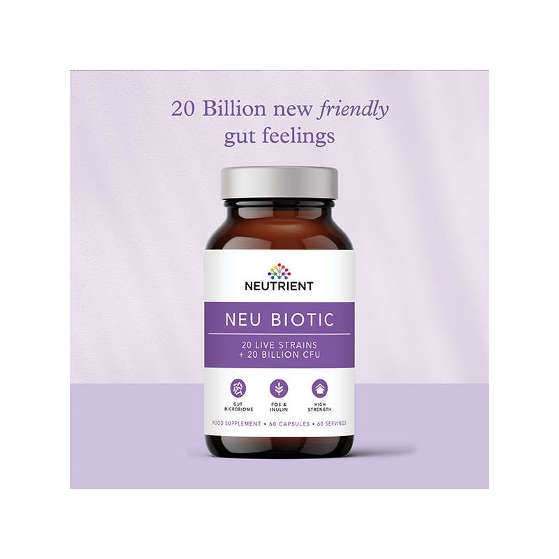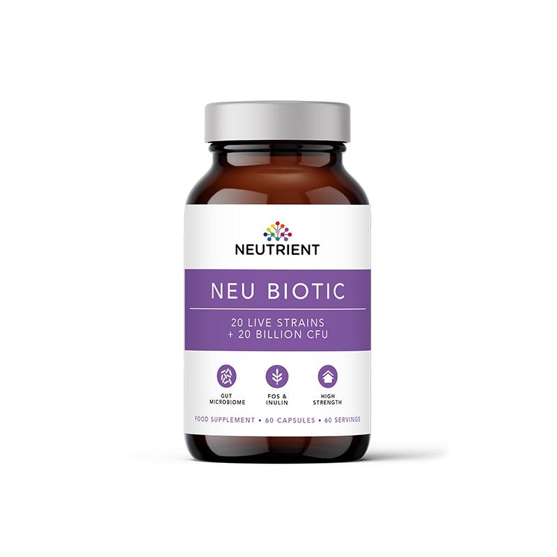 Neutrient Neu Biotic is a high strength, multi-strain microbiome formula to help replenish friendly bacteria and support a diverse gut microbiome.